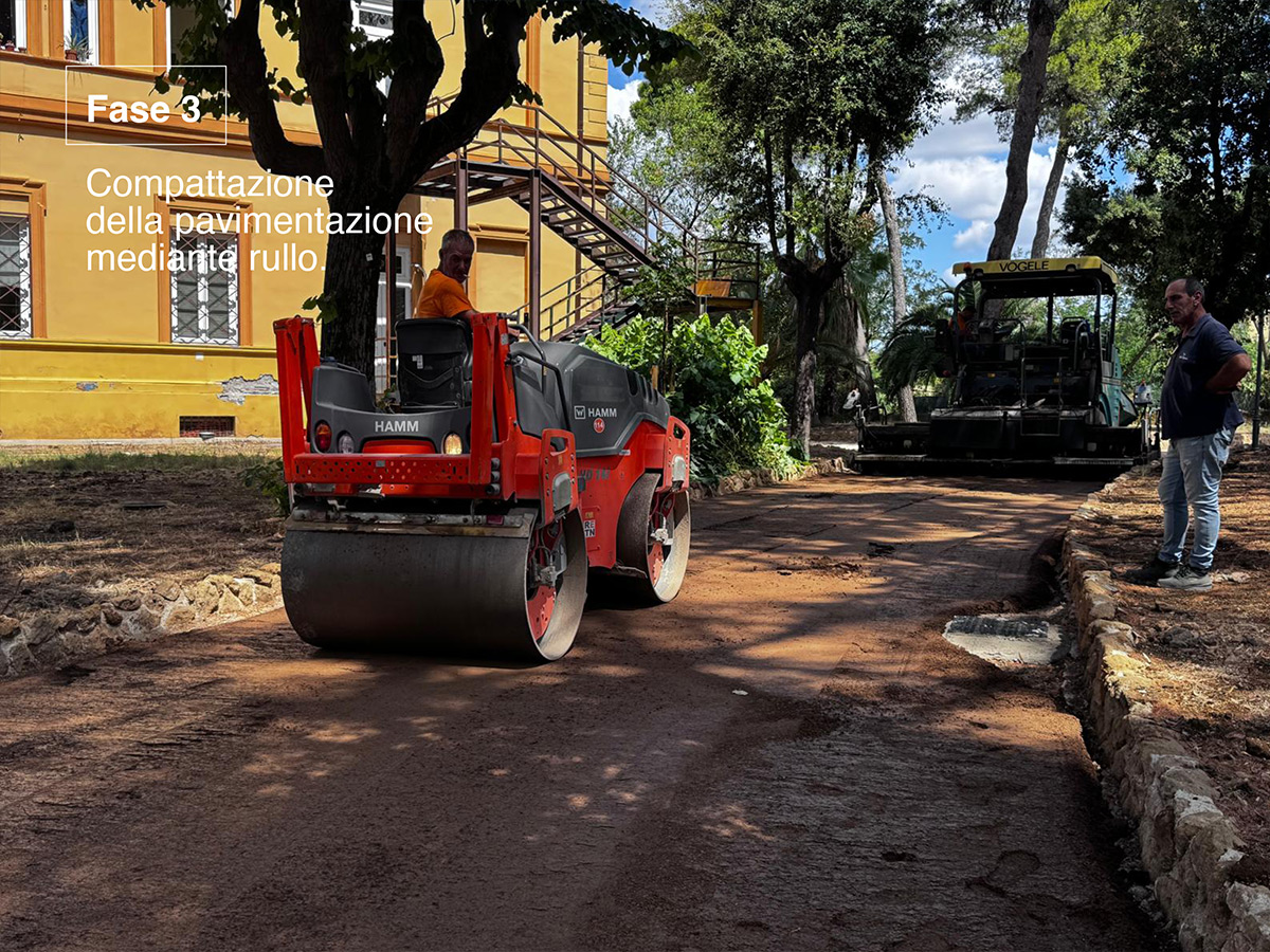The final result is a sustainable internal road network that combines advanced technologies with traditional materials, offering solid pathways harmonized with the historical and environmental setting of the Santa Maria della Pietà complex..