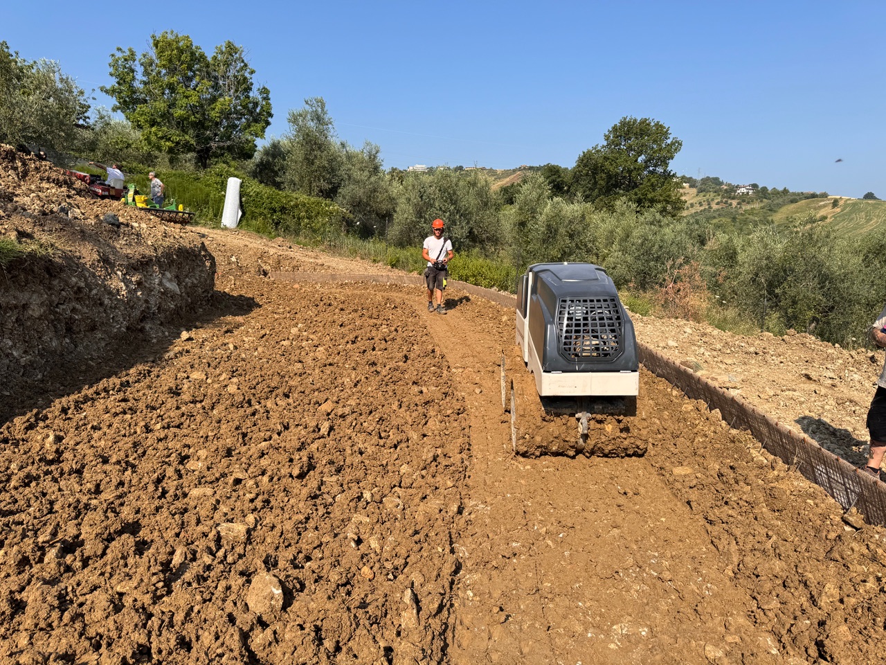 Construction of reinforced soil with GREEN STAB PAVE® with on-site soil reuse, stabilized on site with eco-friendly liquid product: fast processing, dust-free, high static and environmental performance.