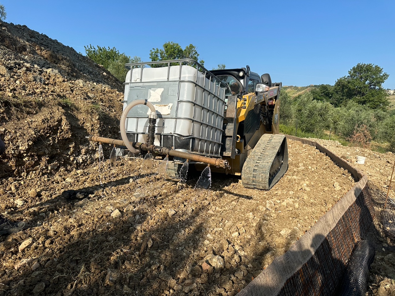 In the project carried out in San Marino, 540 m³ of soil was treated to build a retaining structure about 3 meters high and 6 meters deep, articulated in 5 successive layers. The soil was of very poor quality, but it was successfully recovered thanks to our liquid stabilization system.