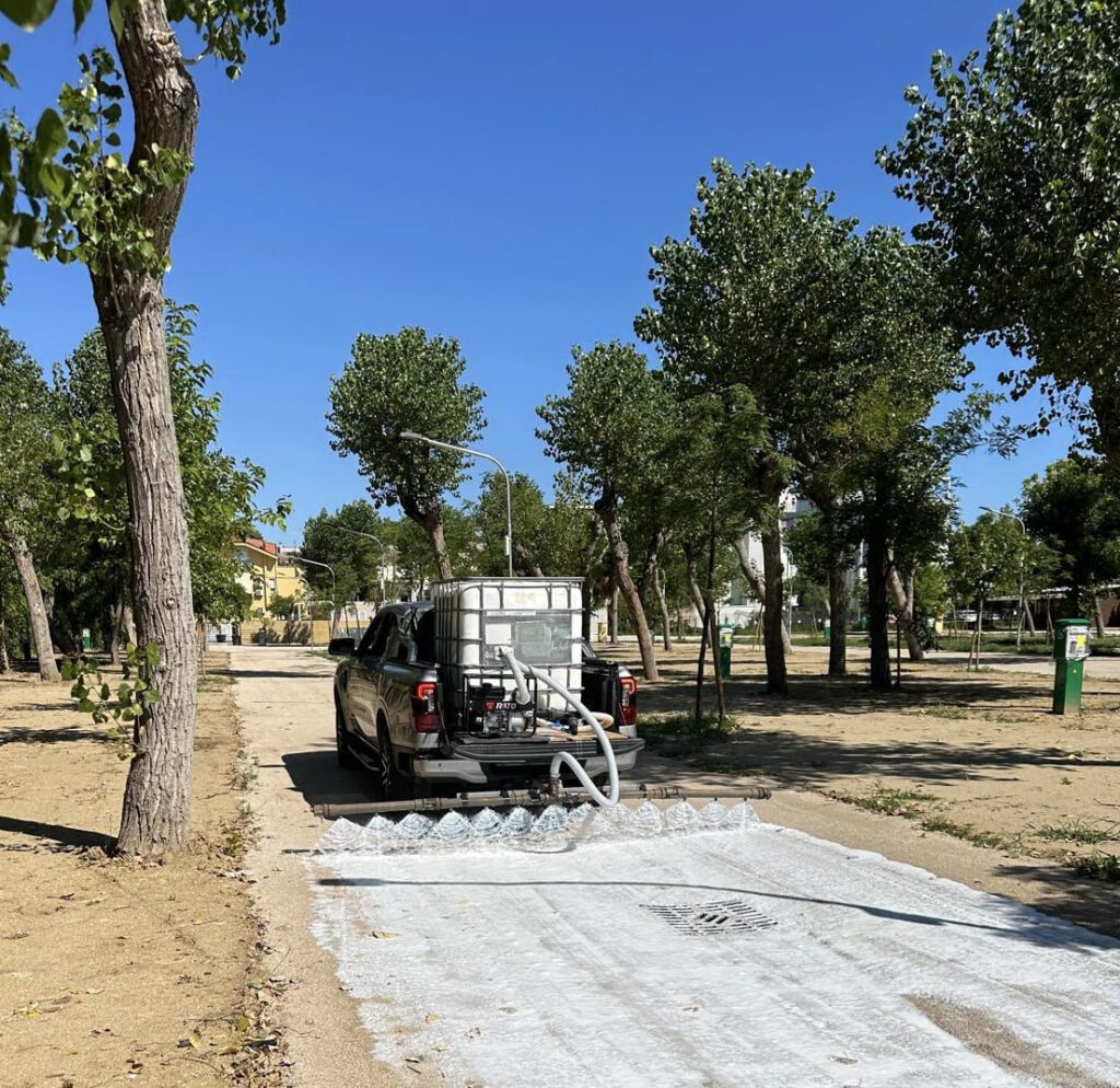 In questa applicazione si è scelto l’uso del Soil Sement, che è stato applicato facilmente con un pick-up sul quale era posizionata la cisterna da 1000 litri, collegata tramite una pompa a una barra sulla quale sono posizionati gli ugelli.